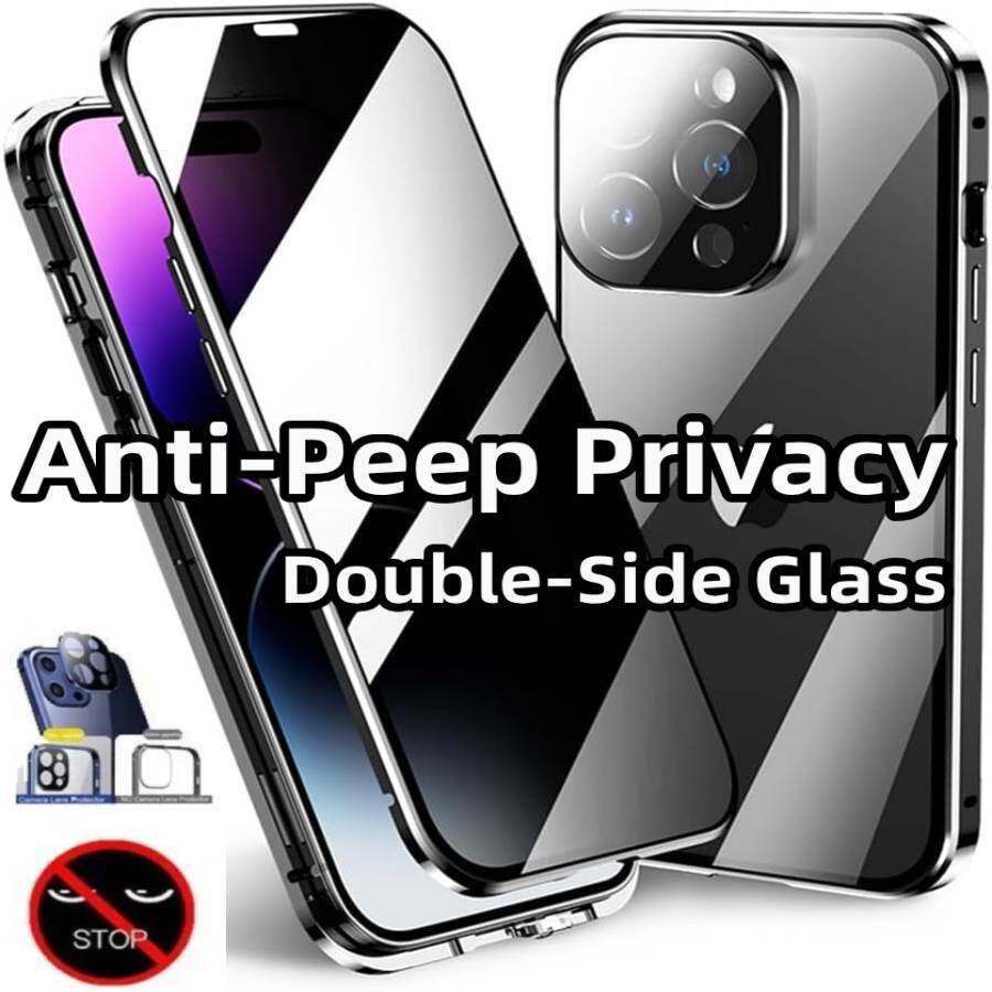 360° Magnetiskt Anti-Peep Sekretessfodral för iPhone 16 Pro Max/16Plus/16+ med Kameralins Skyddsskydd Telefonstötfångare svart