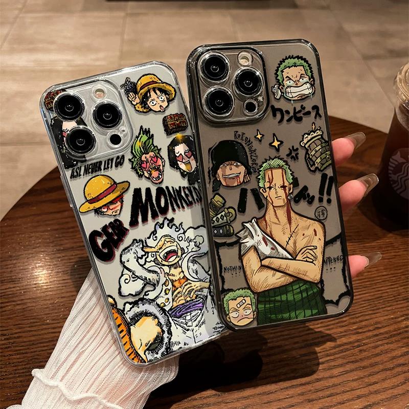 One Piece Luffy Zoro Graffiti Anime TPU Telefondeksel For IPhone 15 14 13 Pro Max & Samsung Galaxy S24 Ultra, Gjennomsiktig Støtsikkert Beskyttelsesde