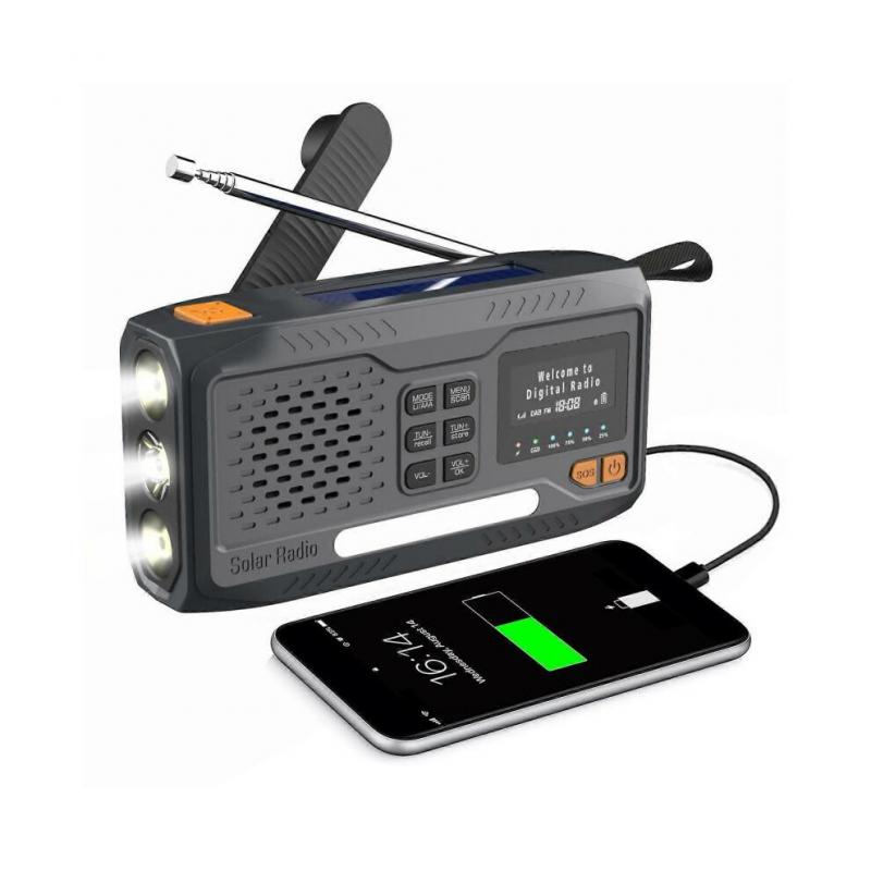 WR-6B Utendørs DAB Radiohøyttaler Powerbank Solcelledrevet Håndsveiv Nødradio