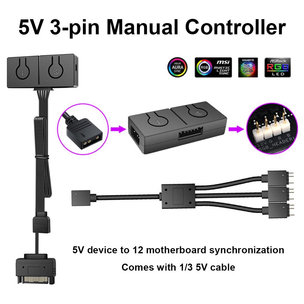 5V/3-pins ADD-RGB til 12V/4-pins Adapter Synkronisering med Hovedkort 5V ARGB til 12V RGB Konverter 50 Fargemoduser for PC-kabinettviftelys