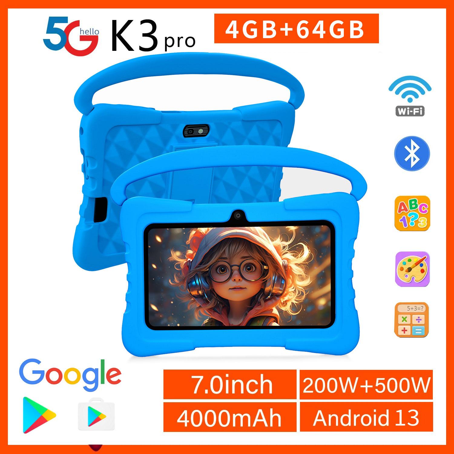 7 tommers K3 Nettbrett for barn BDF MeFeng 5G WiFi Android 13 Lærings- og utdanningsnettbrett 64GB Gul/Grønn Blå
