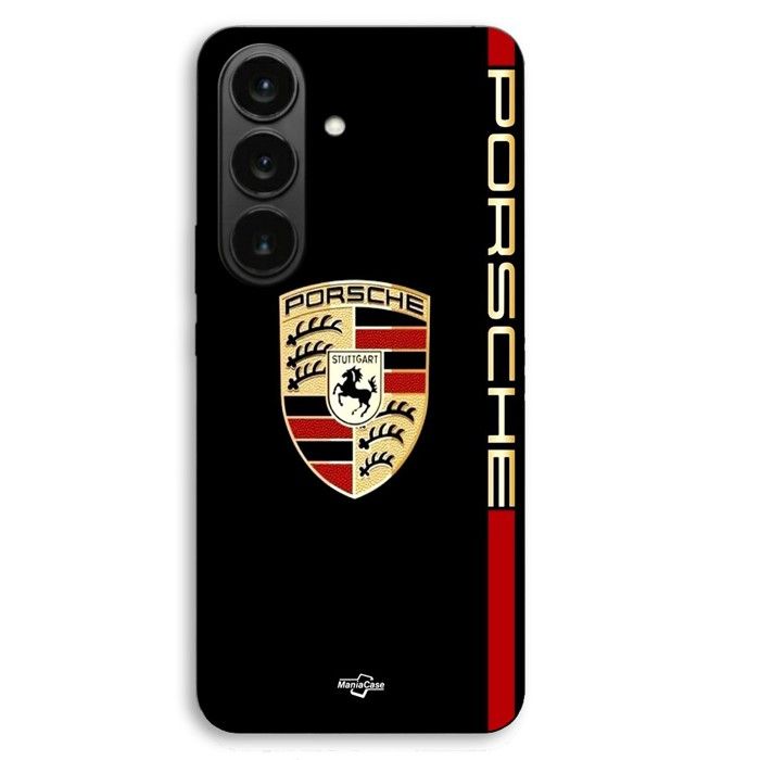 Coque de téléphone - MANIACASE - Samsung Galaxy S26 Plus - Logo PORSCHE rouge et doré - Silicone TPU - Souple noir