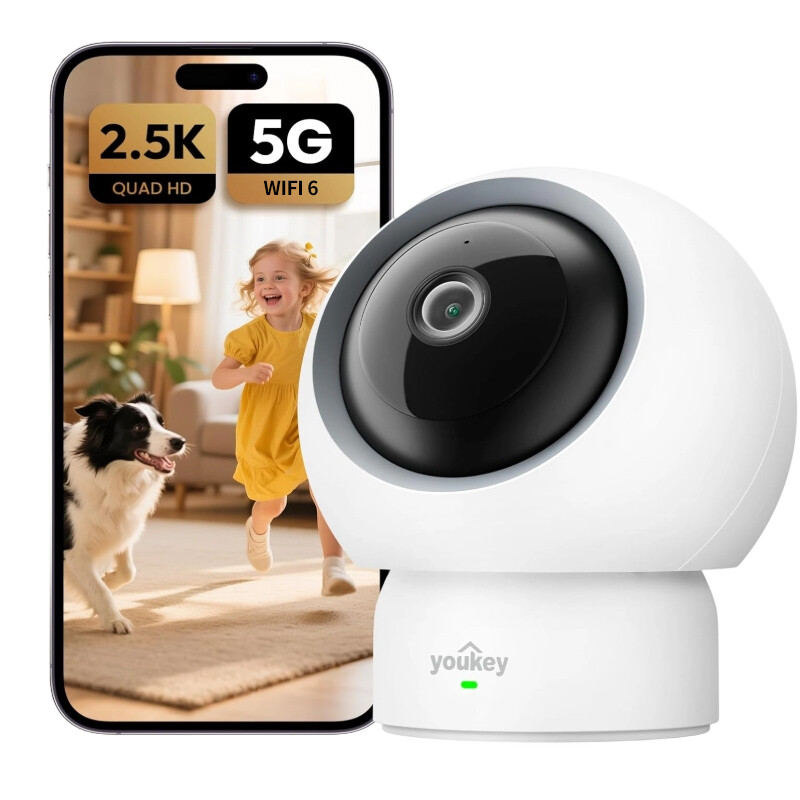 UNIVIEW Youkey P310 Caméra de surveillance intérieure PTZ 2,5K, détection 360° des personnes, des animaux et des pleurs de bébé, Wi‑Fi 6 (2,4/5 GHz), suivi automatique, audio bidirectionnel avec appairage Bluetooth, aucune consigne mensuelle
