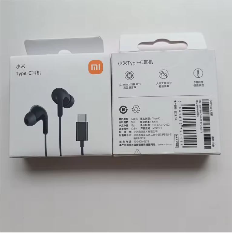 Nye Originale Xiaomi Type C Kablede Hodetelefoner In-Ear Headset Sportshodetelefoner Med Mikrofon Stereo Ørepropper Telefontilbehør Hvit