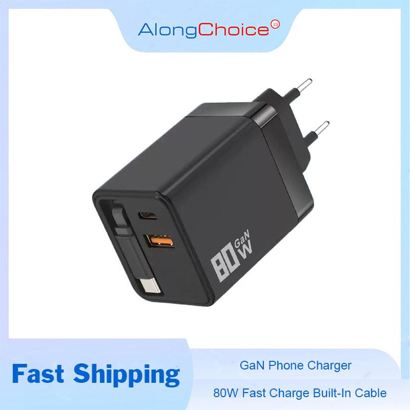 80W Superschnelllade-Typ-C-USB-Handyladegerät mit teleskopierbarem USB-C-Kabel für iPhone 16 15 Samsung Laptop mit Licht grün