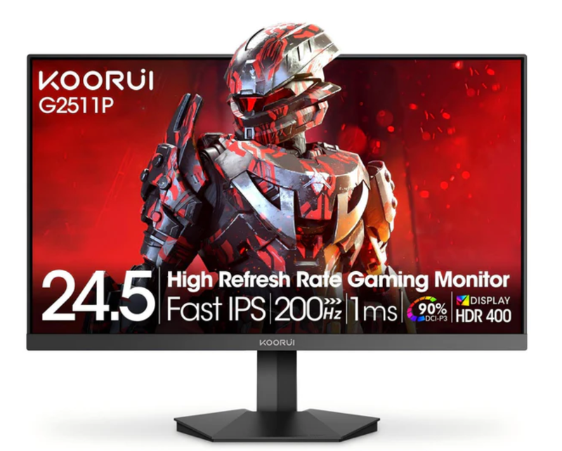 Koorui G2511P 63,5 cm gamingmonitor – 200 Hz FHD (1920 x 1080), Fast IPS, HDR400, Adaptive-Sync, 1 ms GtG, 75 x 75 mm VESA