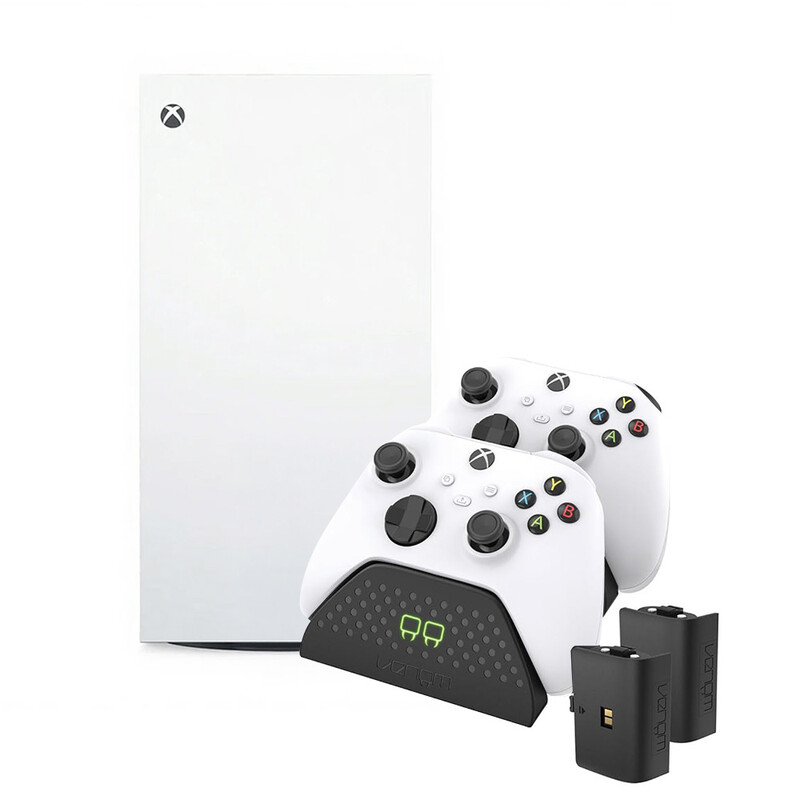Console Xbox Series X avec Manette sans fil - 1 To - Blanc - Édition numérique - Version EU + Manette sans fil Xbox blanche & Double station de chargement Venom noire offerts