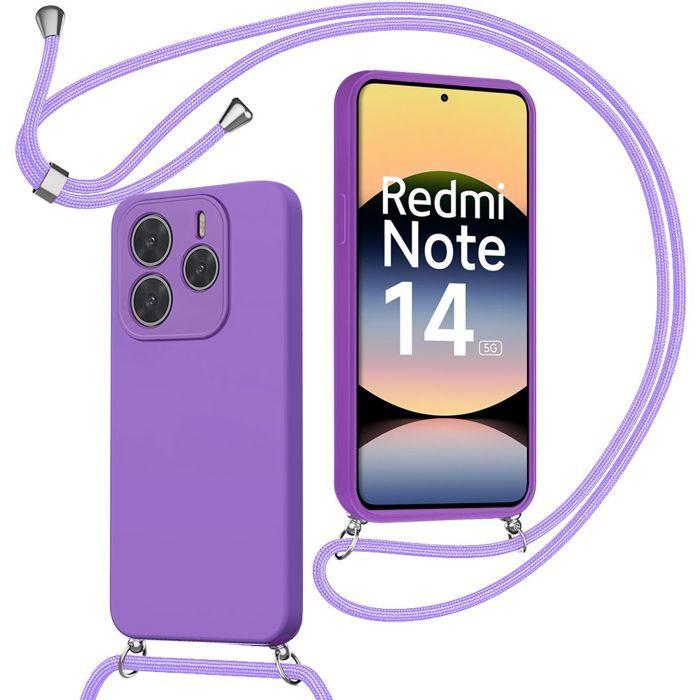 Coque pour Xiaomi Redmi Note 14 5G (pas pour 4G), Protection Silicone Souple Antichoc avec Cordon Violet