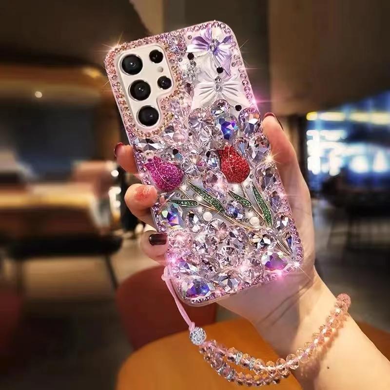 Luxe Trendy Doe-het-zelf Rozen Diamant Hoesjes Voor Samsung Galaxy S26 Ultra 25 Edge 24 FE 23 Plus S22 S21 S20 A57/56/55 A37/36/35 Transparante Hoes D