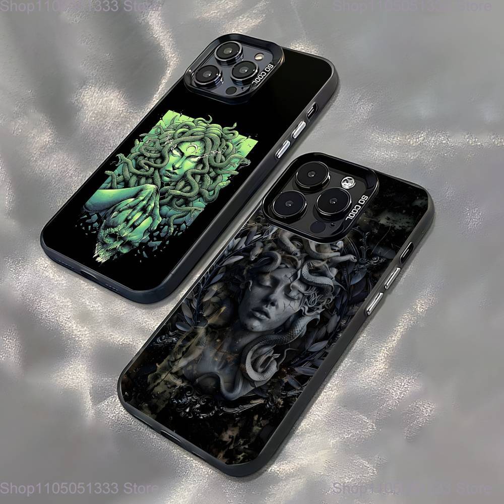 Medusa Grekisk Mytologi Titta På Mig Fodral För iPhone 16,15,14,13,12,11Pro,XS,Max,Plus,Mini Svart Godis Matt Stöttåligt Skydd