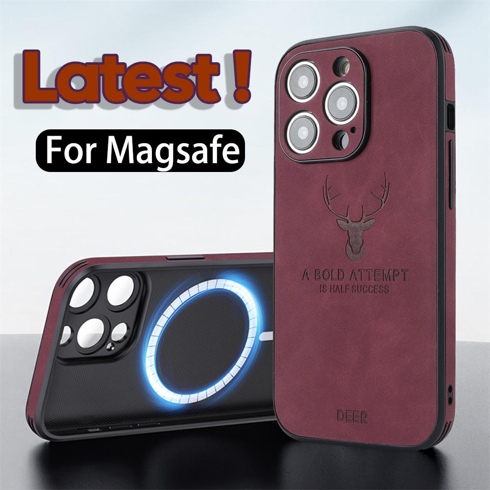 Luksus Hjort Business Skinn for Magsafe Magnetisk Deksel For iPhone 17 Air 16 15 14 13 12 11 Pro Max Plus Trådløs Lading Deksel