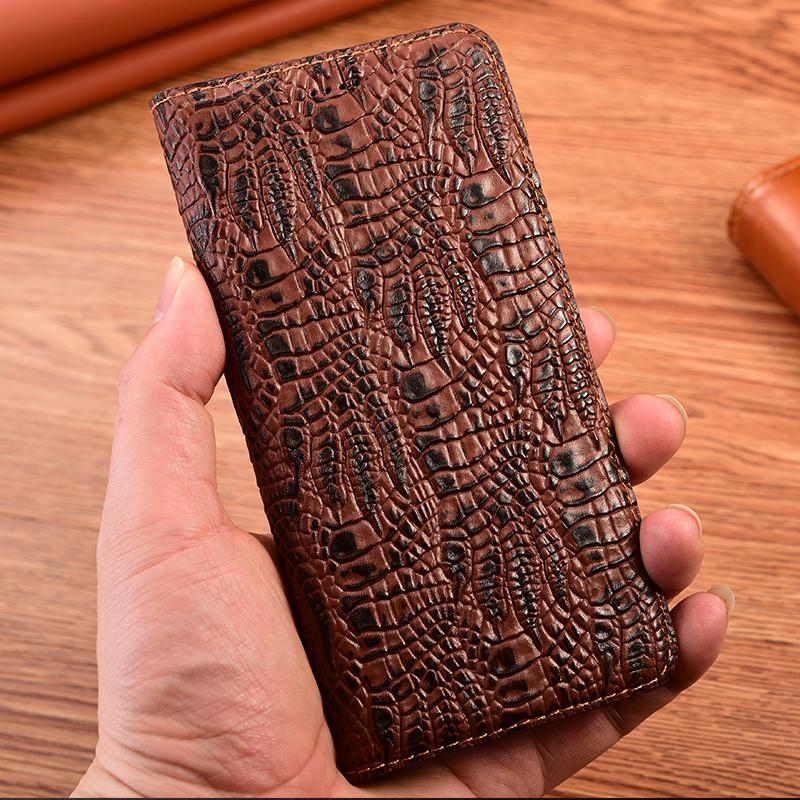 Handyhülle aus echtem Krokodilleder für IPhone 17 Pro Max 13 11 12 14 15 16 Pro Max 16 Plus Wallet Flip Cover Cases dunkelbraune