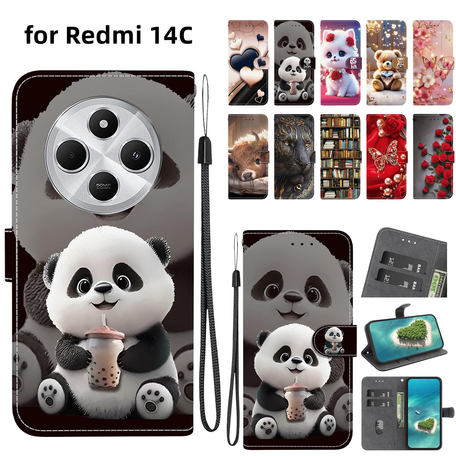 Étui portefeuille en cuir peint de luxe, style livre, housse de protection pour Redmi 13 13C/Redmi A3/Redmi K60 Ultra/Redmi 12C 11A 10C 40S 9A 9C 6A 7