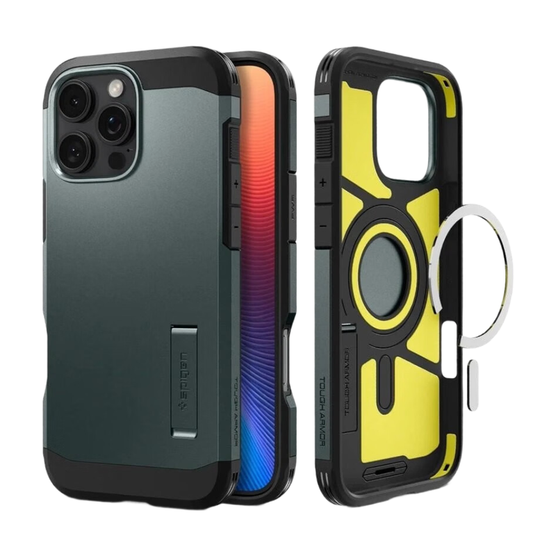 Spigen Tough Armor MagSafe Hülle mit Standfuß für iPhone 16 Pro - Grün