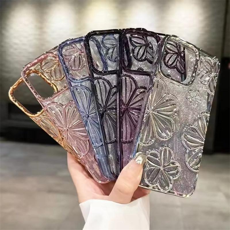 Coque de téléphone anti-chute à paillettes plaquées style rétro avec motif de fleur peinture à l'huile 3D pour iPhone 17 Air 16 15 14 13 12 11 Pro Max