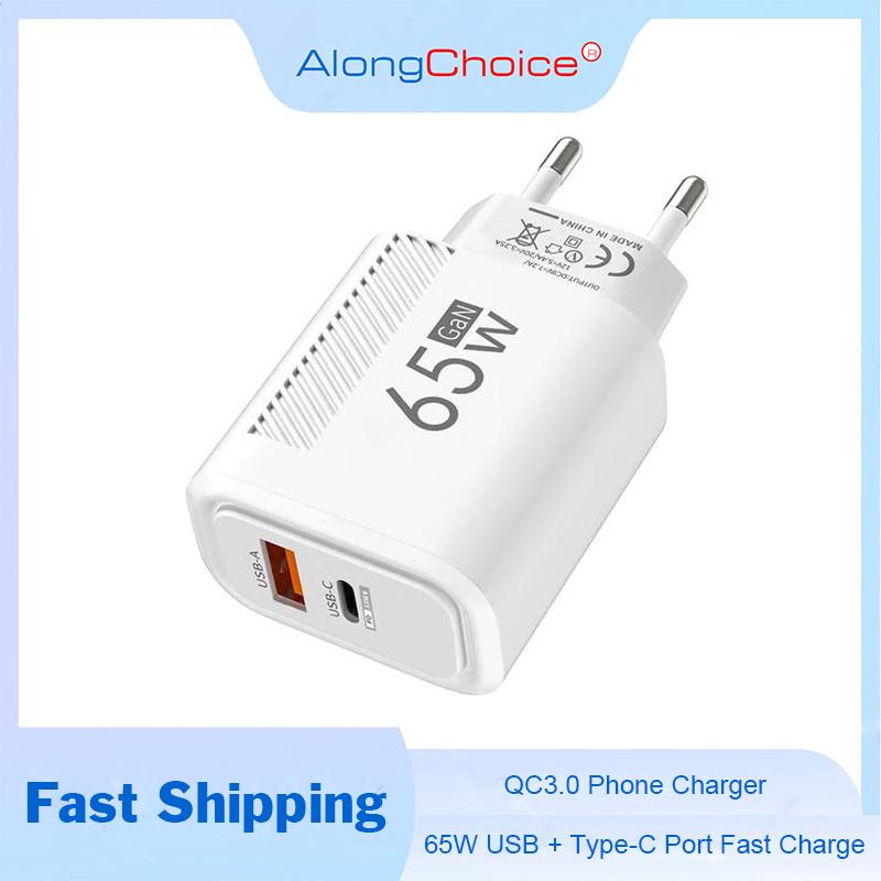 Total 65W USB C Lader GaN Hurtiglading Vegglader For iPhone Samsung Xiaomi Hurtiglading EU/US Plugg Telefonlader Adapter Hvit