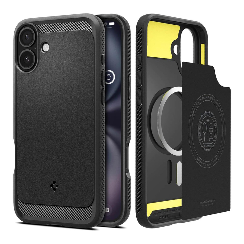 Spigen Rugged Armor MagFit Hülle für iPhone 16 Plus, kompatibel mit MagSafe-Zubehör – Mattschwarz