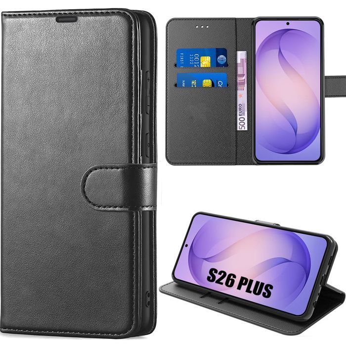 Coque pour Samsung Galaxy S26 Plus, Protection Flip Case Anti-Rayures Antichoc Effet Cuir Noir noir