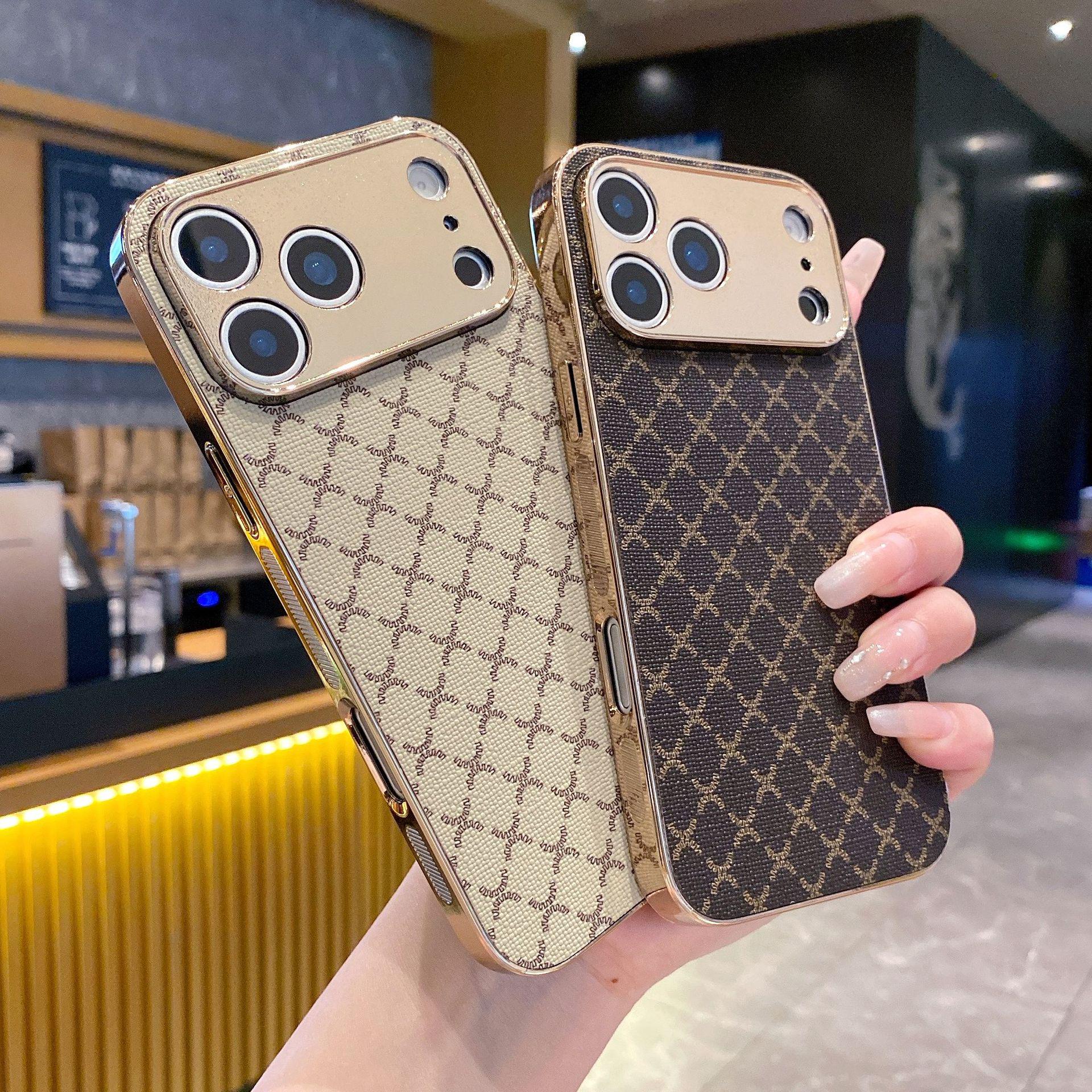Tide Luxe Geruit Leerachtig Anti-Val Case voor Apple 17 Pro Max/16/15 Pro Max