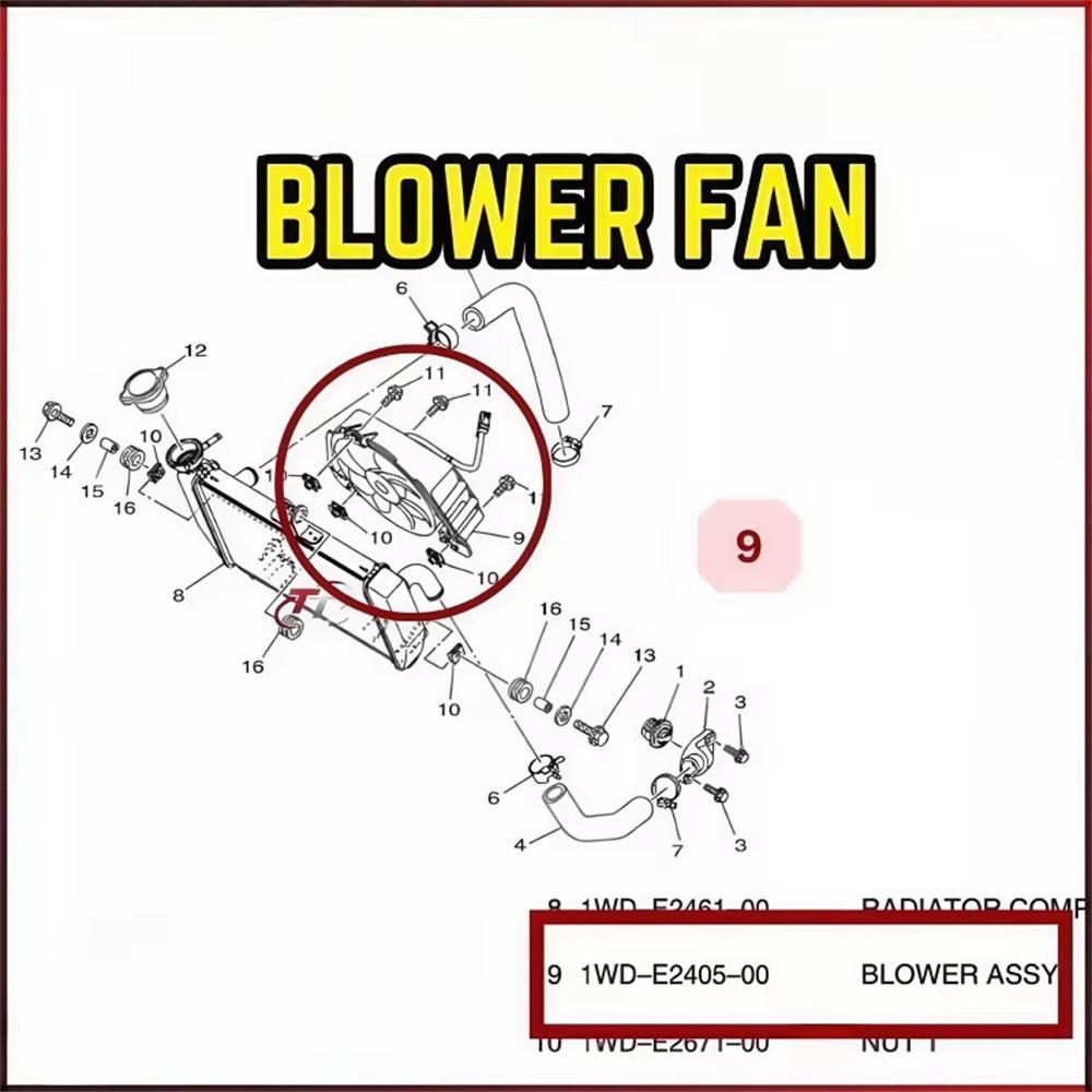 1 X Engine Radiator Cooler Fan 1Wd-E2405-00 For Yamaha Yzf R3 R25 Mt25 Mt3 18-24