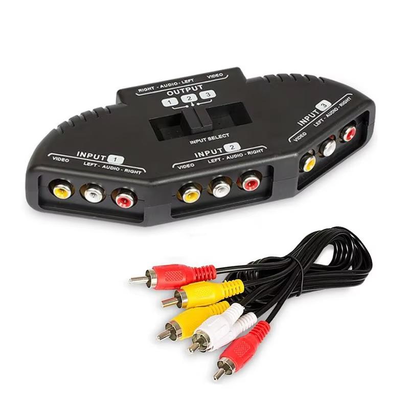 3-veis Lyd Video AV RCA Svart Brytervelgerboks Splitterbryter Med RCA-kabel For TV X-box DVD-spiller Enheter Bryter Svart