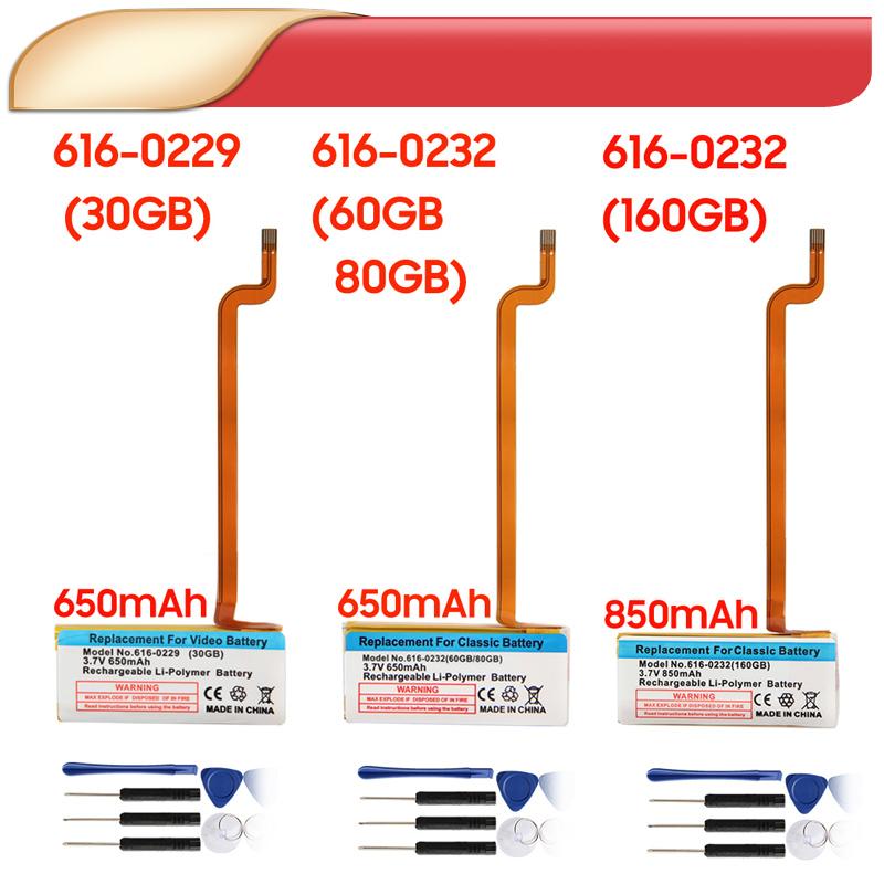 Oplaadbare Lithium Batterij Voor ipod classic gen 6e 7e 80GB 120GB Dunne 160GB iPod 5e Video 60GB 80GB 616-0229 616-0232 616-0232 Batterij