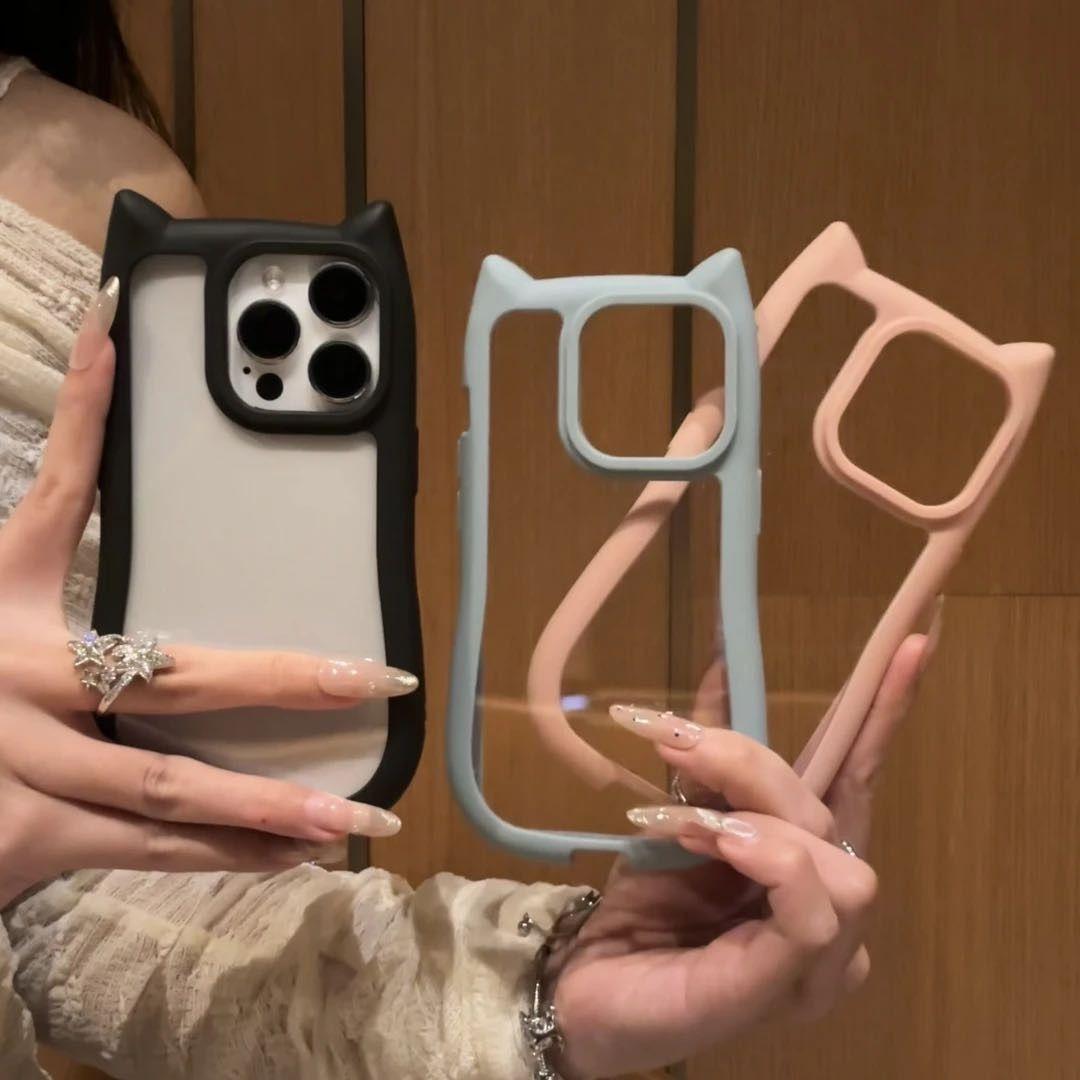 Dreidimensionale Katzenohren für Xiaomi 15/14/13/12 Handyhülle Redmi K70/60/50 Weiblich Note13 Transparent
