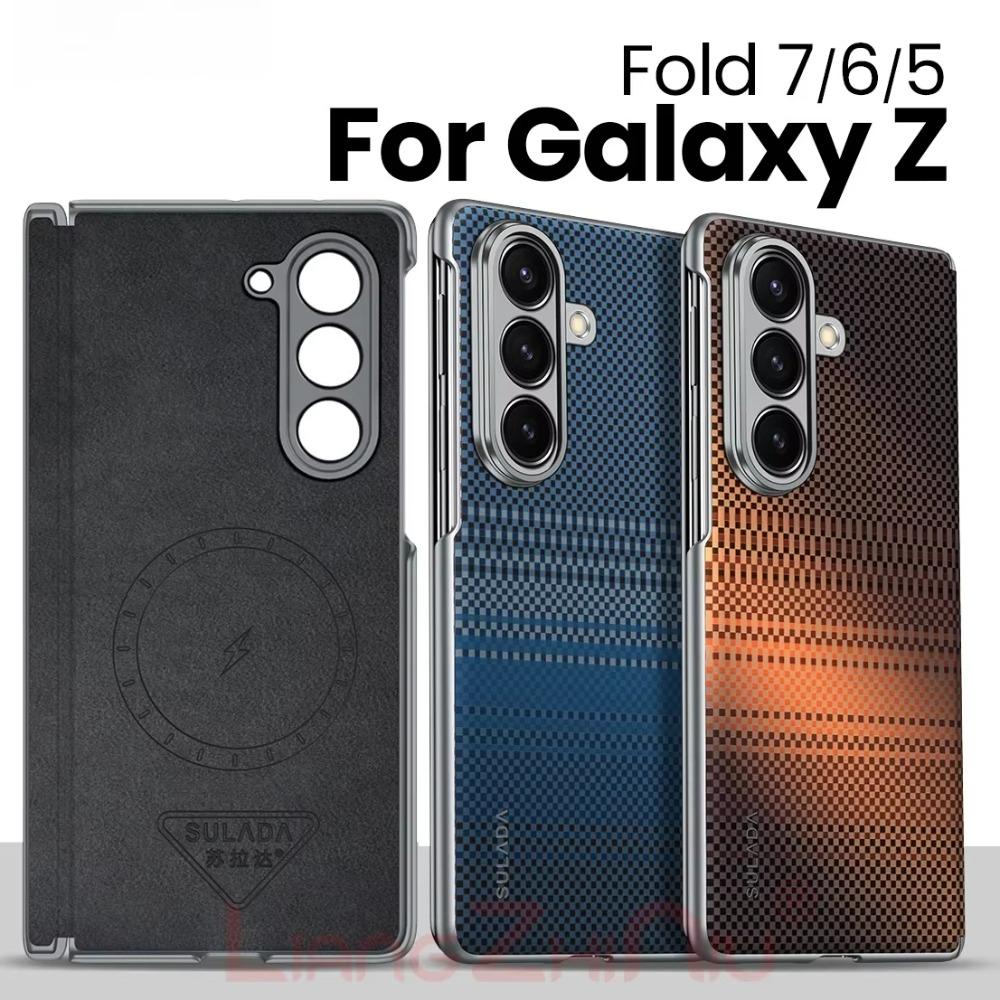 Kevlar Carbon Fiber Case For Samsung Z Fold 7 6 5 Case Woven Texture Hidden Magnetic Charging Hinge Magnetic Protect Shockproof blue