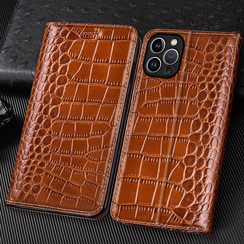Krokodilmönster Äkta Läder Fodral med Lock för Apple iPhone17 Pro Max 16 Pro Max / 16Pro 16e Plus Affärs Retro Bokstil Plånboksskydd grön