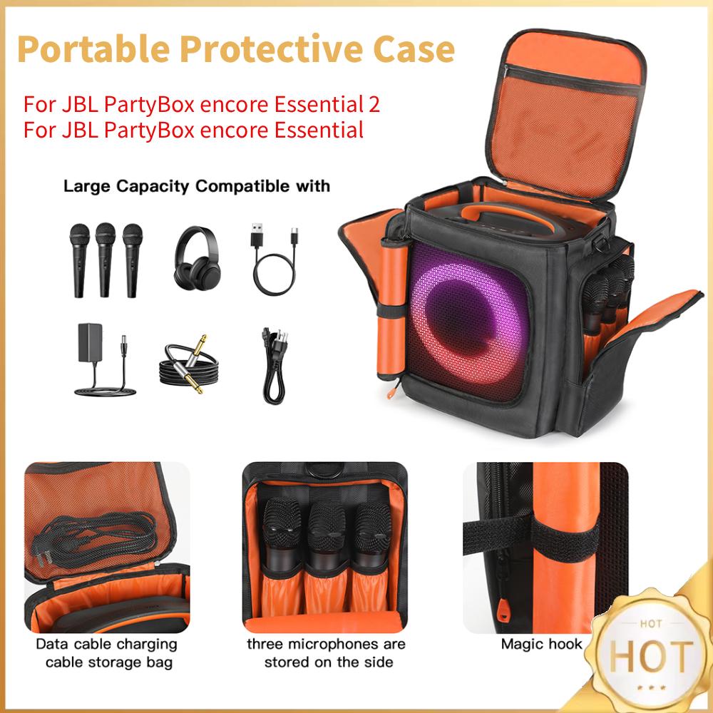 For JBL Partybox Encore Essential 2 Polstret Høyttaler Beskyttelsesdeksel Støtsikker Dobbeltsidig Høyttaler Oppbevaringsveske med Mikrofonlomme Svart