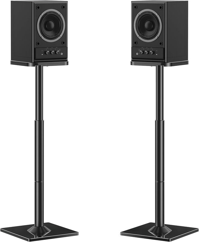Universal Speaker Stands Height Adjustable up to 95 cm, Speaker Stand with Glass Base and Internal Cable Duct for Shelf Speakers, 10 kg Load Capacity, Black, 1 Pair