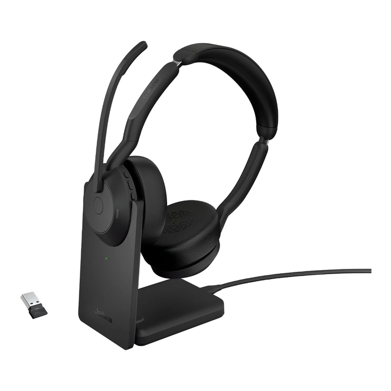 Jabra Evolve2 55 kabelloses Stereo-Headset mit Air Comfort-Technologie, Geräuschunterdrückungs-Mikros und ANC – kompatibel mit UC-Plattformen wie Zoom und Google Meet – Schwarz