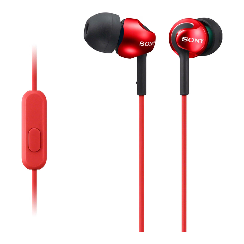 Sony MDR-EX110AP Ohrhörer mit tiefem Bass, Smartphone-Steuerung und Mikrofon - Metallic Rot