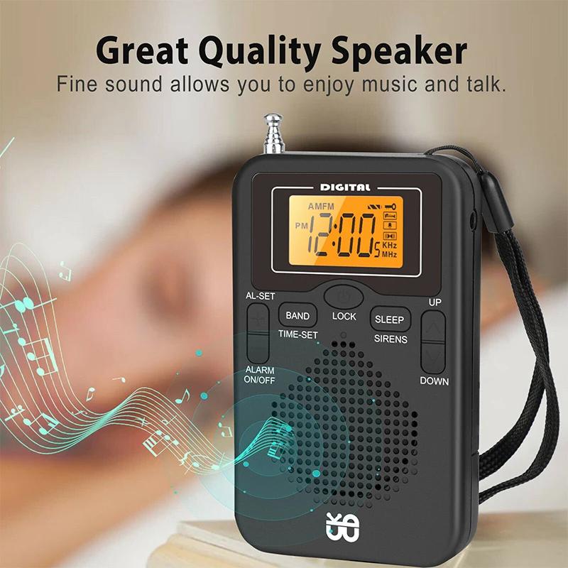 Pocket Radio Telescopic Antenna Mini AM/FM Full Band Clock Controlled Stereo Radios Receiver For Running Walking Camping Home black