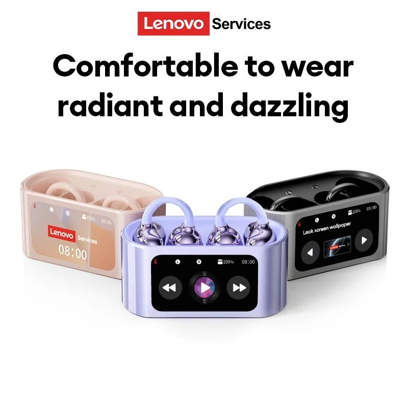 Original Lenovo RS105 OWS Ear Clip Touch Screen Earphones LCD Full Color Smart Screen Control Wireless Earbuds Bluetooth 6.0 Headphone black