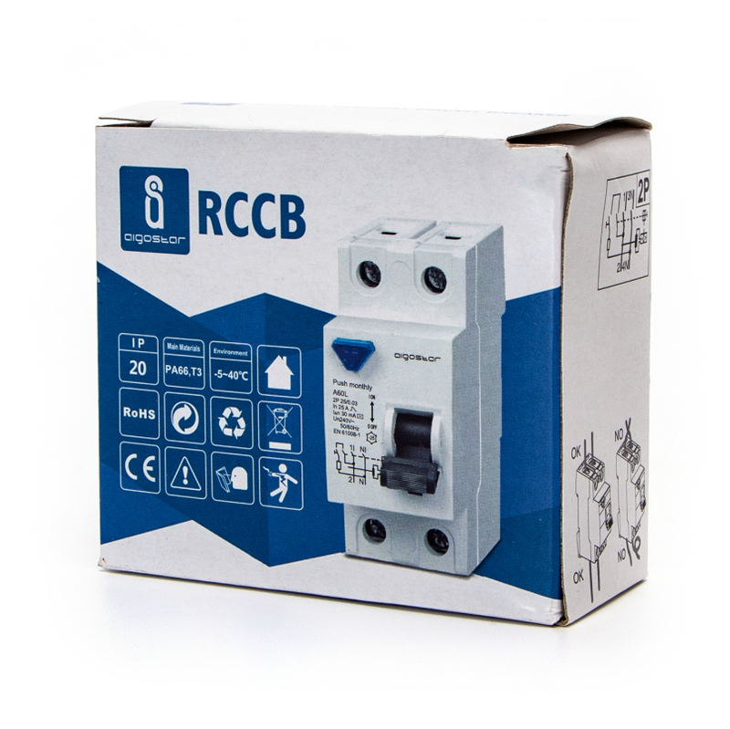 Aigostar Fehlerstromschutzschalter/AC Typ/2P/25A/Fehlerstromschutzschalter/PA/Weiß/Farbverpackung
