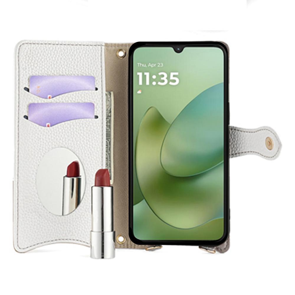 For Motorola Moto G06 4G Leather Case Wallet Stand Cover Irregular Tail Style with Chain Strap