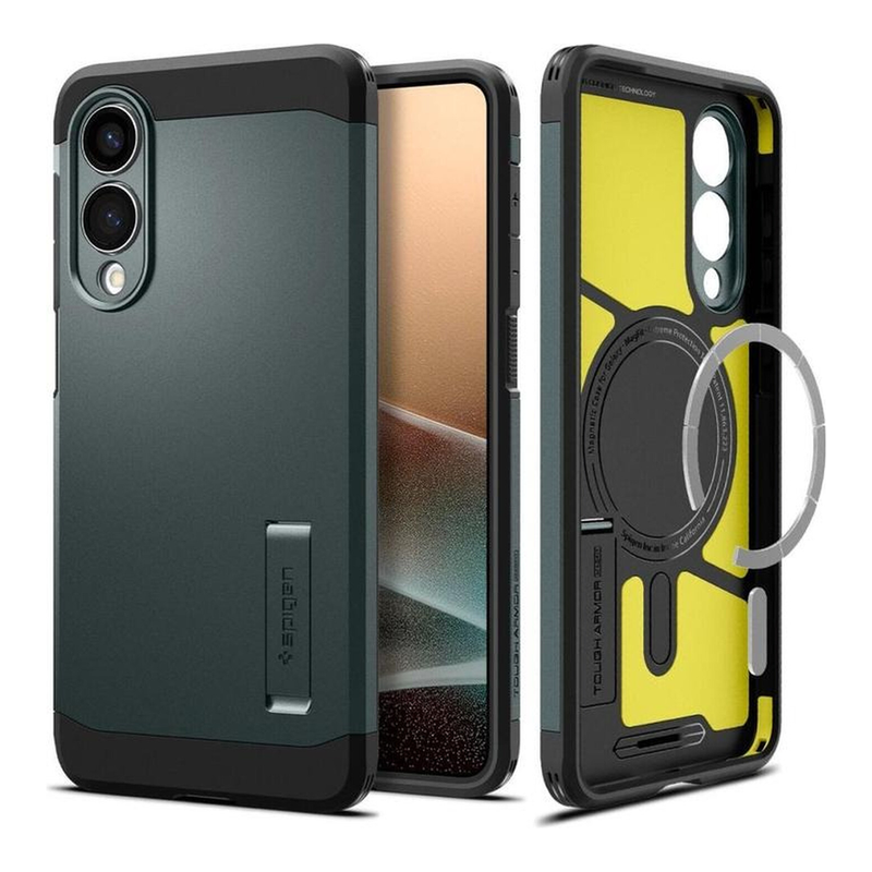 Spigen Tough Armor MagSafe-Hülle für Samsung Galaxy S25 Edge - Grün/Schwarz