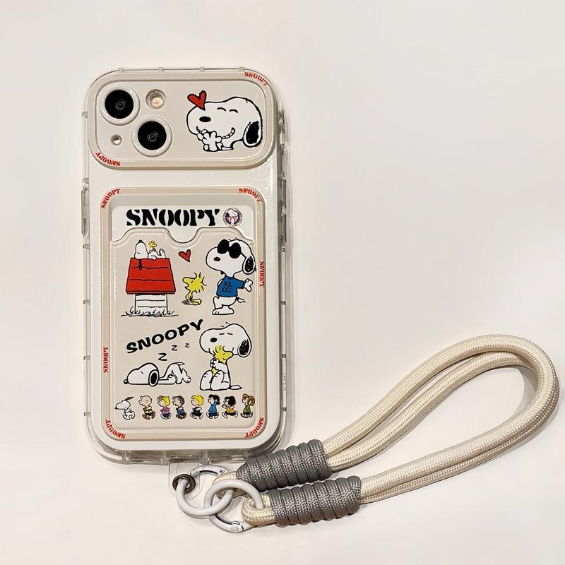 Snoopy Telefonskal med Handledsrem för iPhone 16 15 14 13 12 11 Pro Max XS X XR 16 Plus 16 Korthållare Stötsäkert Silikonfodral