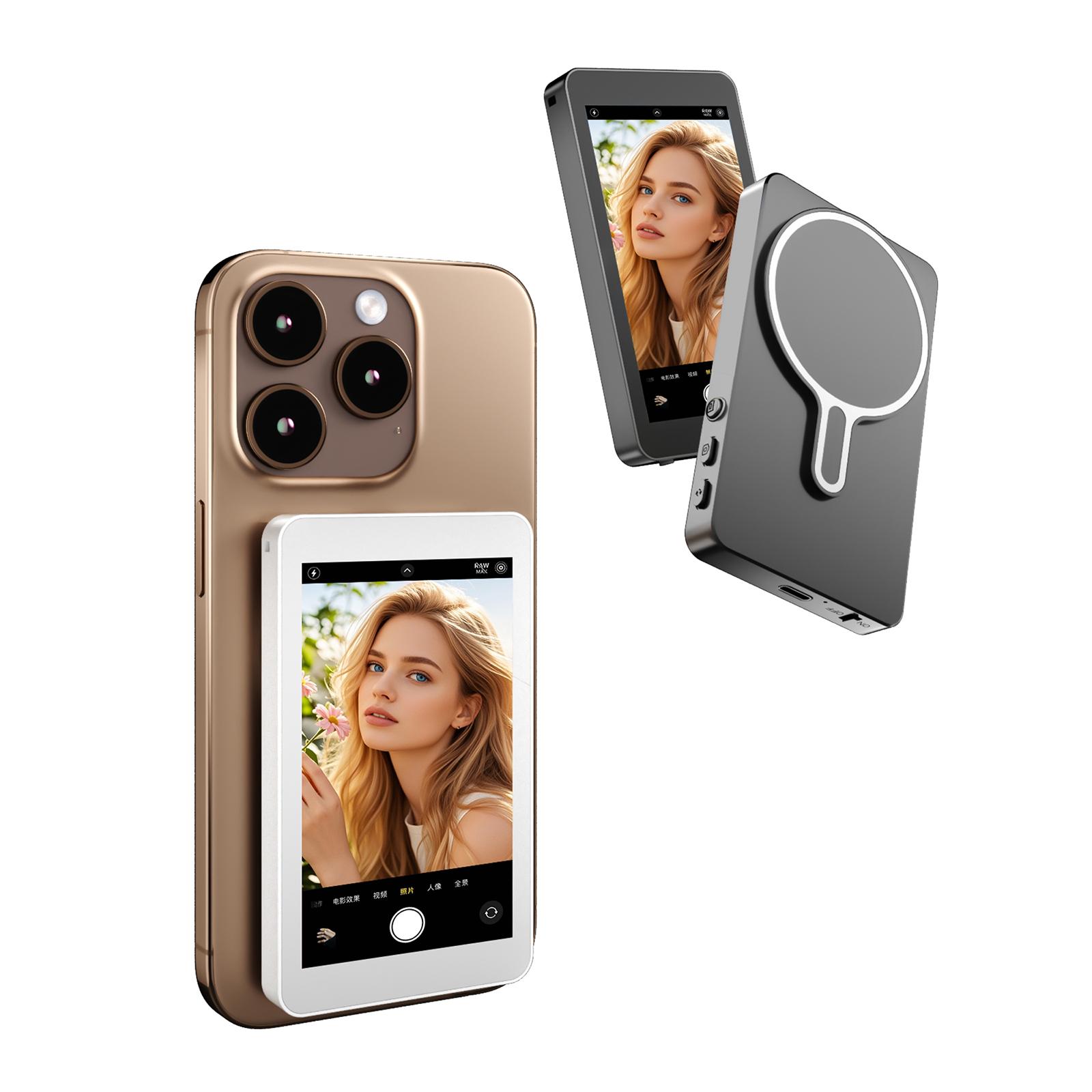 Magnetisk trådlös selfie-monitor för iPhone Android HD Utökningsskärm Bakre kamera Vlogg Live-videoinspelningsmonitor svart