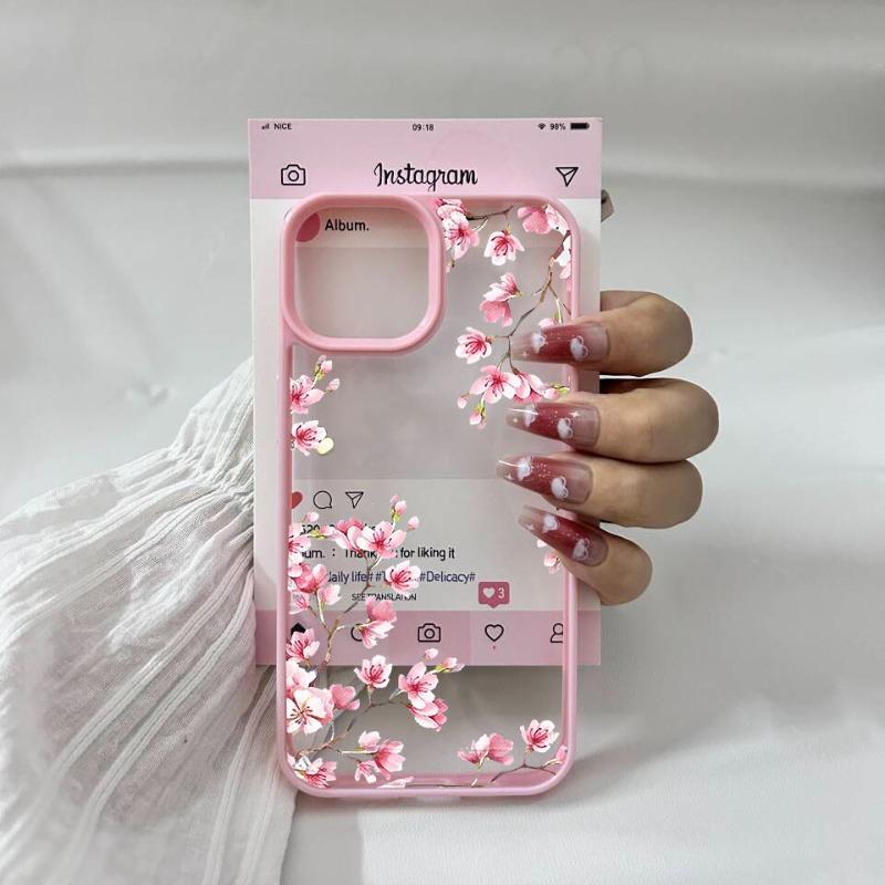 Estetiskt Ljusrosa Magnolia Blomma Fodral för iPhone 15 16 14 13 12 Mini 11 17 Pro Max XS XR 7 8Plus Stötsäkert Genomskinligt Hårt Skydd