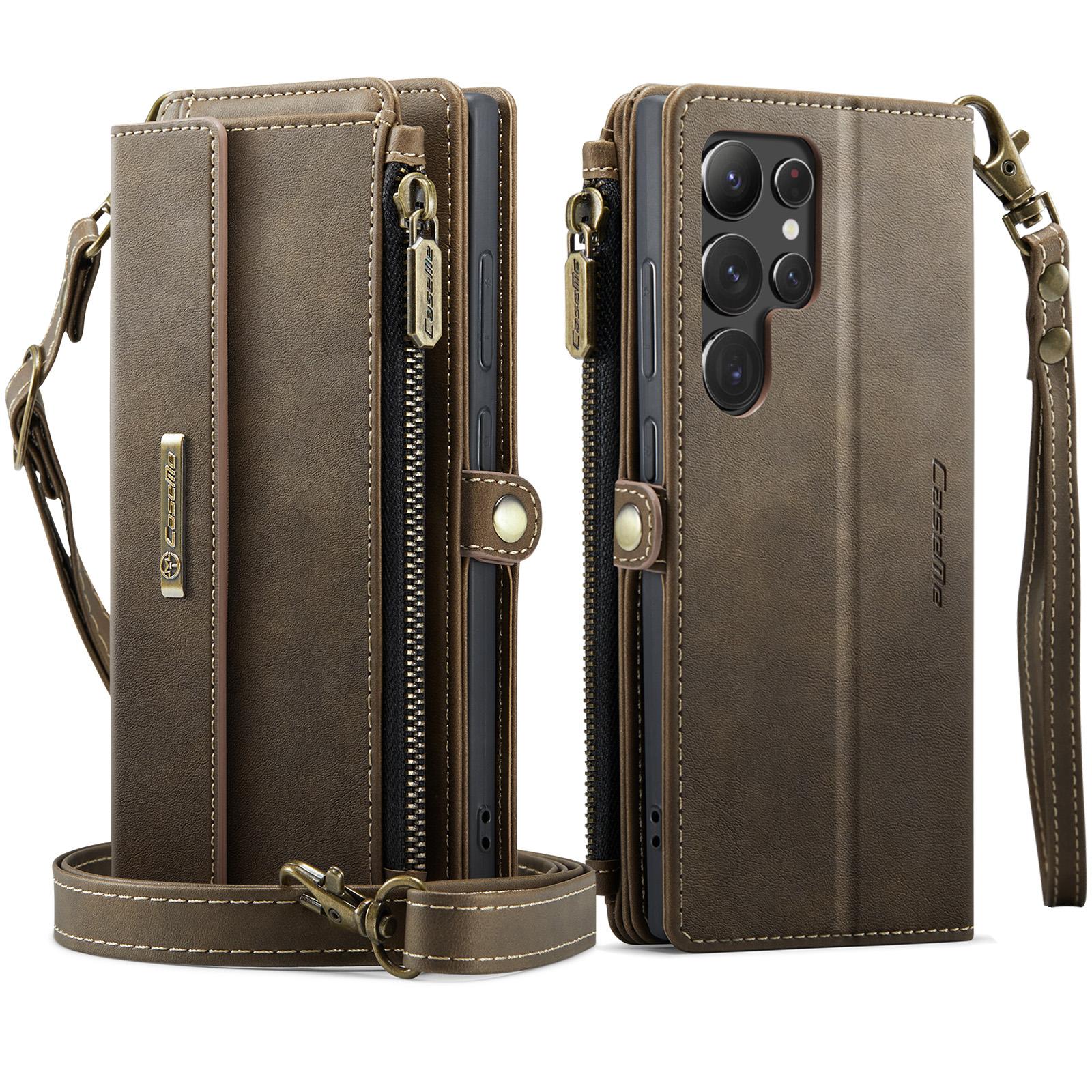 For Samsung Galaxy S22 Ultra 5G Deksel CASEME C39 RFID-blokkerende Lommebok med Glidelås Støtte Lærdeksel med Stropp