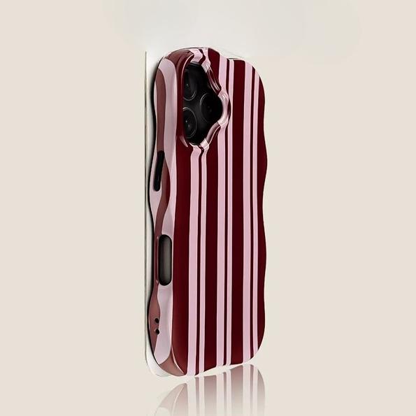 Luksus Striper Fargekontrast Krøllete Deksel for iPhone 16 15 Pro Max 13 14 Tofarget Bølgekant Slankt Deksel for iPhone 16Pro