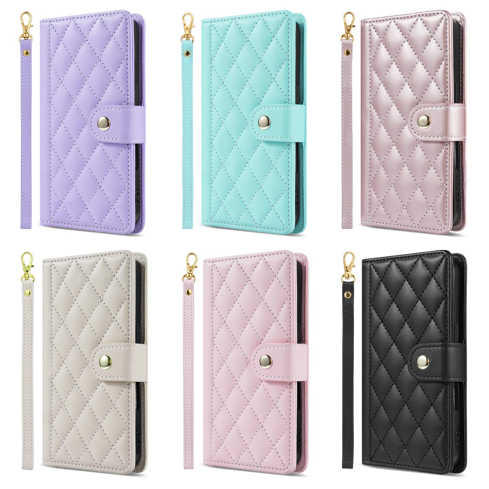 Luksusowy Pasek Skórzane Etui Portfel na Telefon z Siatką 3D Stojak Książkowy Dla iPhone 17 16 15 Pro Max Samsung S25 S24 Plus A17 A16 Dziewczęce Magn