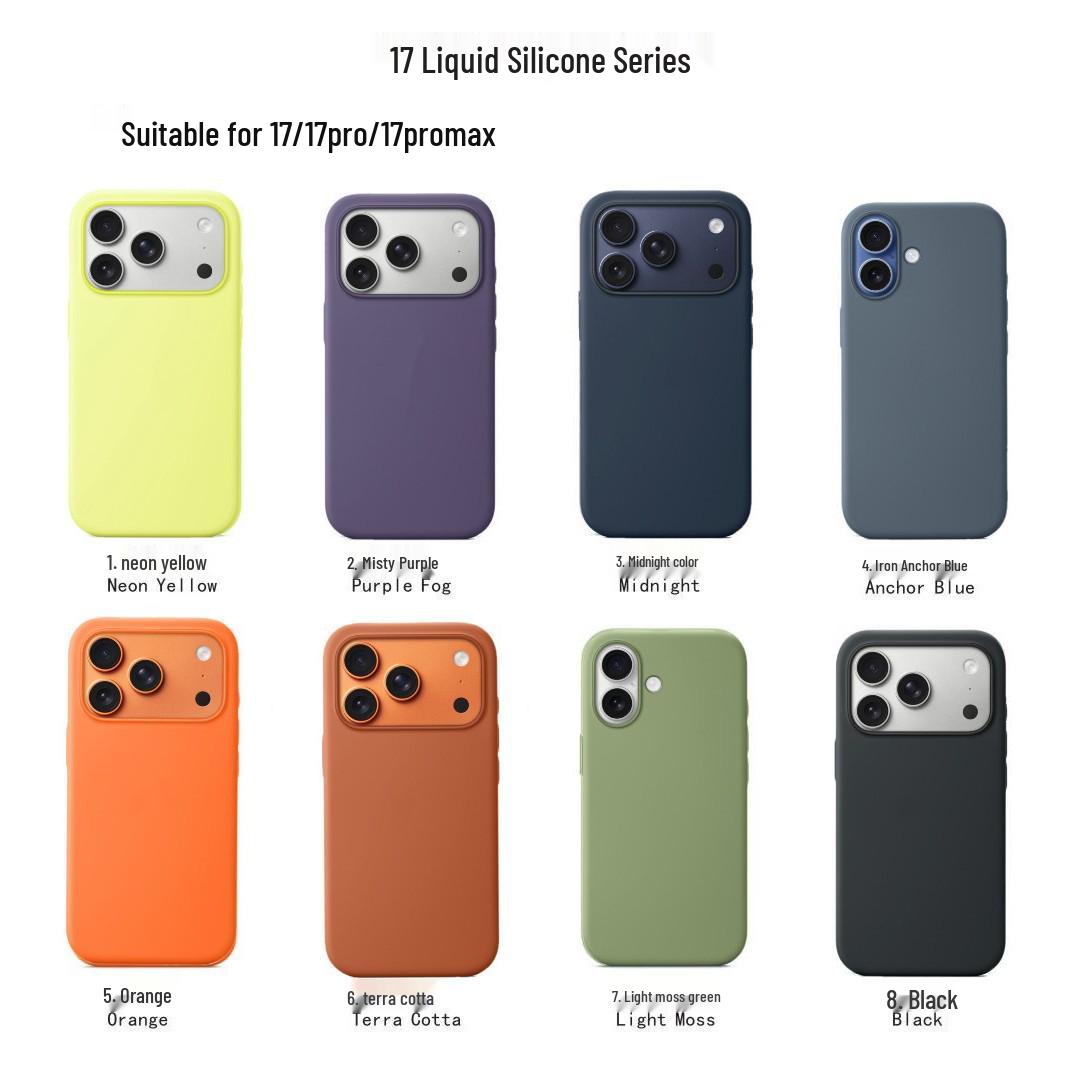 Coque souple en silicone liquide pour iPhone 17 Pro Max - Couleur unie, Coque de protection anti-chute.