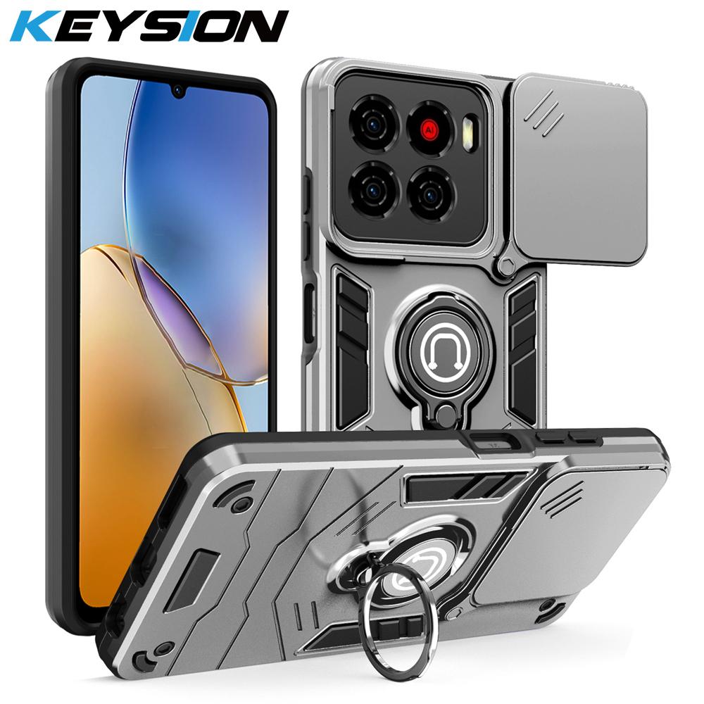 KEYSION Wstrząsoodporne Etui Pancerne dla ZTE Blade A56 4G Silikon+PC Ochrona Obiektywu Pierścień Podstawka Pokrowiec na Tył Telefonu dla Blade A56 ni
