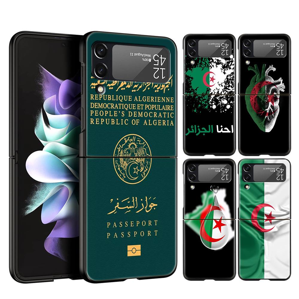 Algeria Passport Hard PC Phone Case For Samsung Galaxy Z Flip 6 5 4 Black Cover For Galaxy Z Flip 3 Foldable Shockproof Capa Bag