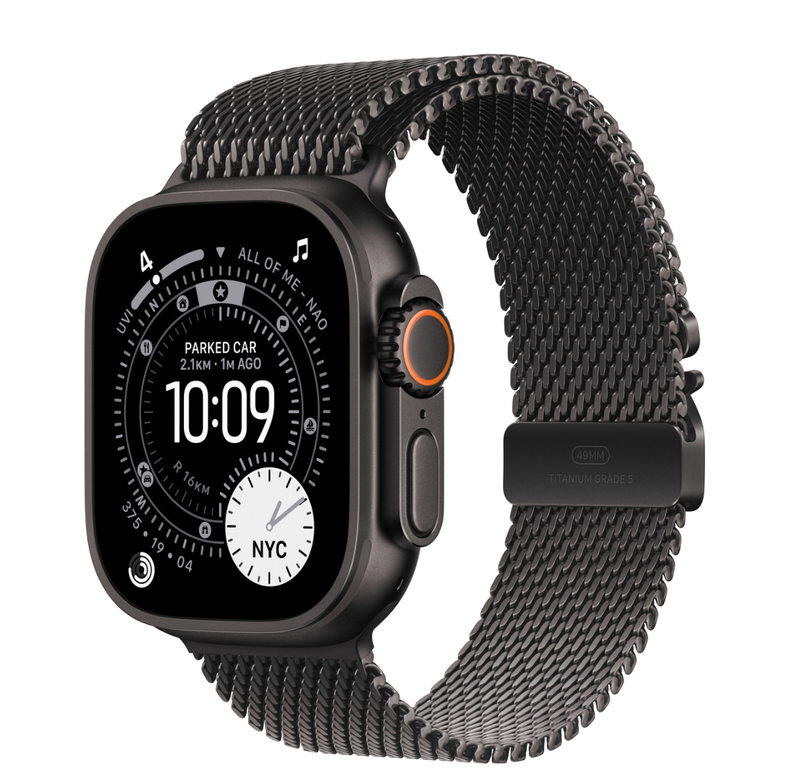 Apple Watch Ultra 3 GPS + Cellular 49mm Black Titanium Case with Black Titanium Milanese Loop - Medium