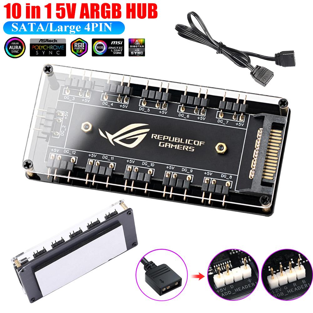 5V 3-pin ARGB RGBW Kabel ASUS AURA SYNC RGB 10 Hub Splitter SATA Strømforlengelseskabel Adapter LED Strip Lys PC RGB Vifte Kjøler