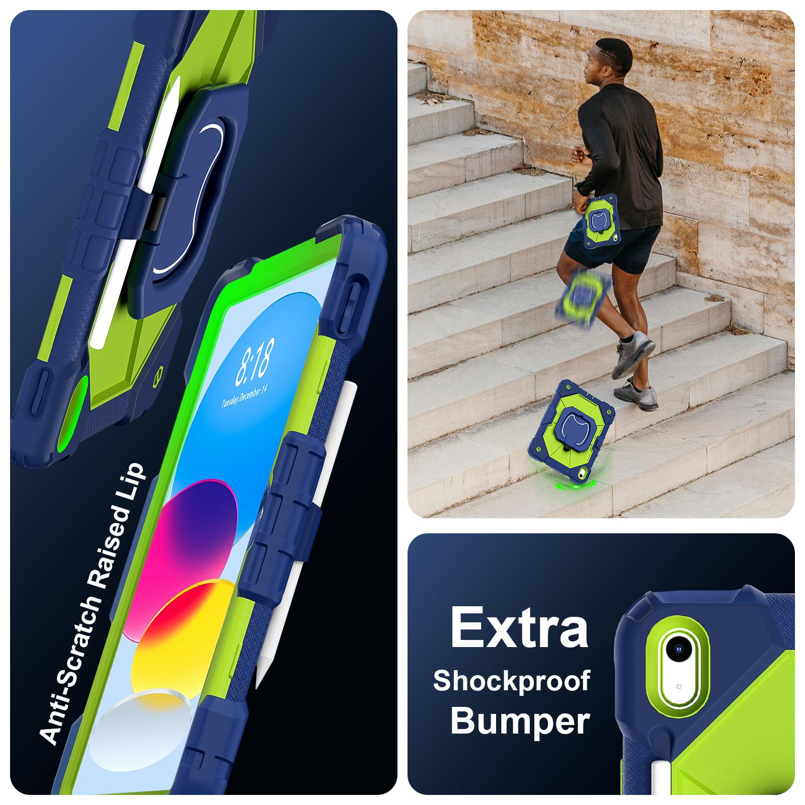 360 Roterende Kraftig Armor-deksel For iPad A16 11. 2025 iPad 10. 10.9'' 2025 Håndtak Stativ Nettbrettdeksel Med Skulderstropp
